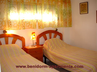 - The bedroom has twin beds with a sofa bed in the living room that makes